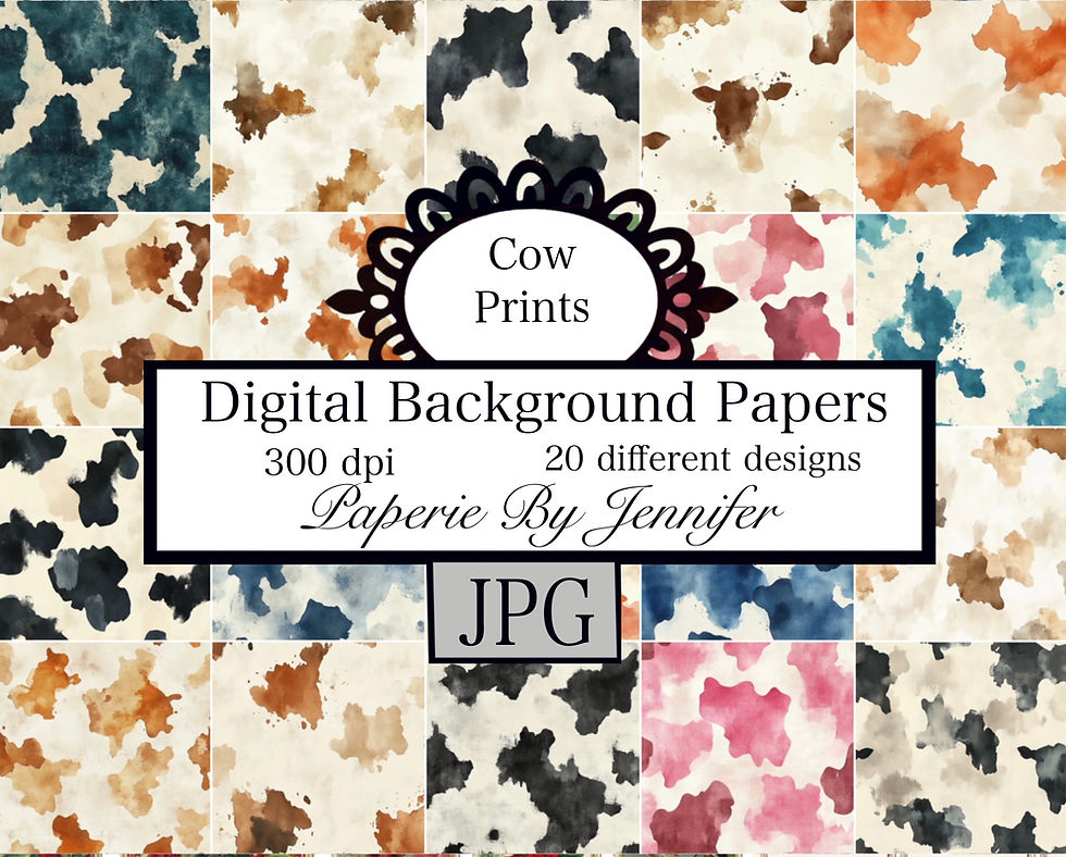 Watercolor Cow Print Papers Backgrounds 20 Designs Instant Download Dis