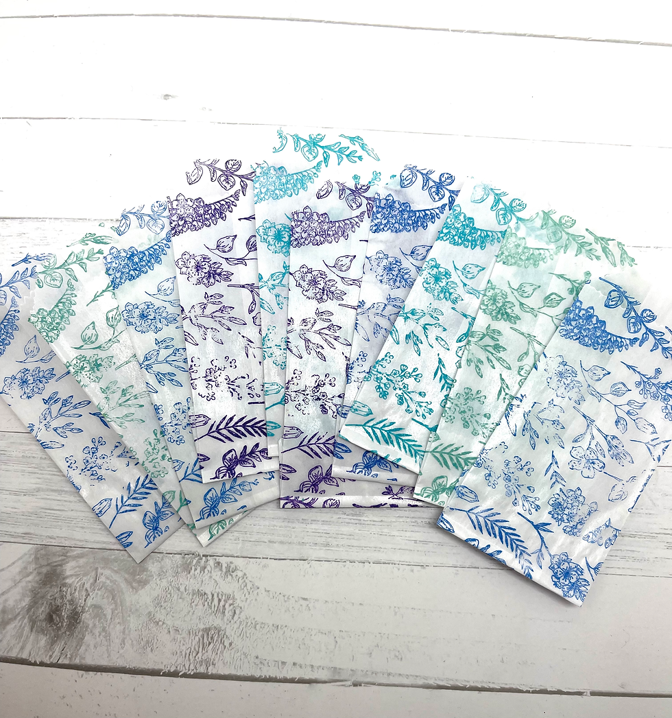 OOAK Handmade Stamped Faded Mini Glassine Bags Junk Journal White 4x2 in Set of