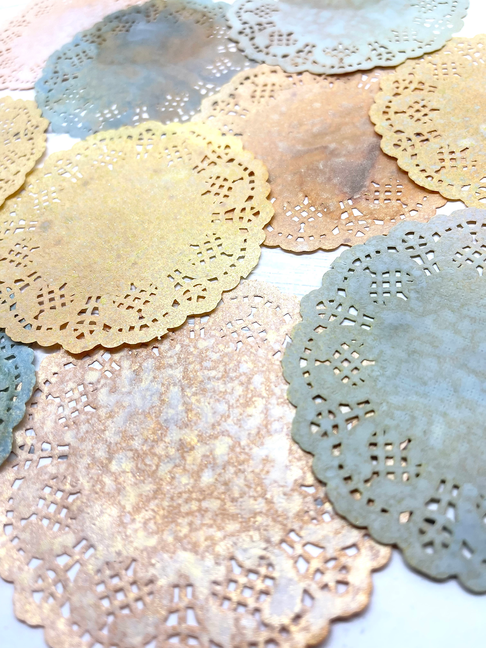 Dyed Vintage Style Ephemera 10 Pc Doilies 3 1/2 inches Tea Dyed Inked