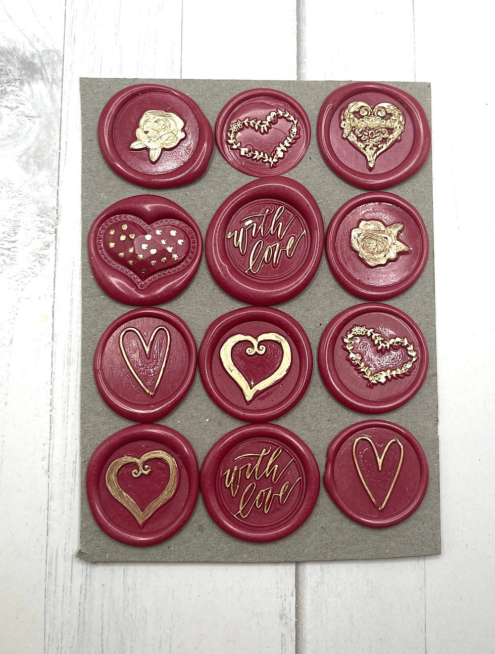 Wax Seals Hearts Handmade 12 Pieces OOAK Card Making Junk Journaling Embellishme