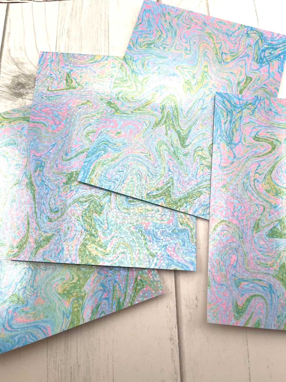 Holographic Marbled Art Background Sheets 4 Pieces Cardstock 4x5.25" Summer